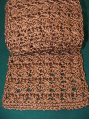 Supplies: Size J Hook, 7 ounces Herrschners Whisper Soft-Dk Beige #0025.