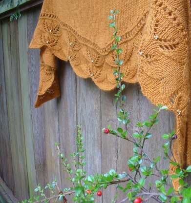 Waiting for her time to shine, Miss Marigold is a graceful, crescent-shaped shawl or shawlette with just a hint of sparkle from a few added beads.