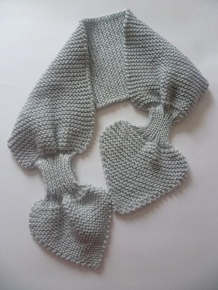 A classic 'Miss Marple Scarf', named after Agatha Christie's famous detective. A 1940s-style scarf with a keyhole loop so that one end can be threaded through the other. The scarf is neat and fitted, an ideal extra layer to keep out the cold. There is a photo-illustrated guide to making the keyhole loop. The sample in the second picture in grey is knit in Sirdar's Cashmere merino silk DK and this is an excellent alternative to their Sirdar No. 1 yarn.