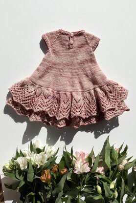 Top-down construction, buttoned back, with a tier ruffle lace skirt