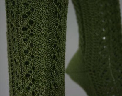 A feminine and lacy sock featuring a short row stockinette heel.