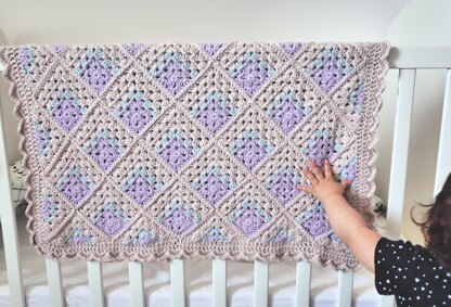 You're gonna love this modern take on the classic granny square baby blanket! It starts with a mitered granny square motif that allows us to easily do the cool colorwork you see in the photos. Then the squares are paired with granny triangles and seamed in a diagonal/diamond pattern for an extra boho, modern twist!
