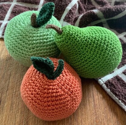 Specifics: - PDF pattern for an apple, pear and orange - Simple instructions (US terms) - Photos of each stage