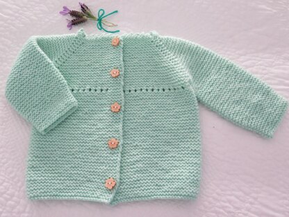 Inspired by the designs in some 1980's pattern books given to me by a lovely friend, I decided to have a go at making something prettier than my usual designs. Though of course without the seams and separate neck and button bands that were the norm back then. A sweet little neckline made with picot cast on, and an eyelet row to slide in some ribbon if you like, but cosy (and easy to make).