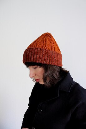 - GAUGE (after washing): 19 sts x 26 r in Broken Ribbing for the Hat Body (see CHART in the pattern) with 5.0 mm (US 8) needles = 10 x 10 cm = 4 x 4 “