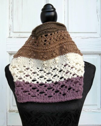 The **Mochaccino Cowl **is a fairly straight forward knit and due to the nature of the design it may be worn a few different ways, including pulled up over the head to provide extra warmth around the ears/neck.