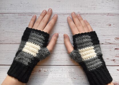 These crochet wristwarmers have a modern but classic look, and go with any outfit! Black and white buffalo plaid carries as a timeless design, and the fitted structure of these gloves gives them a sleek look.