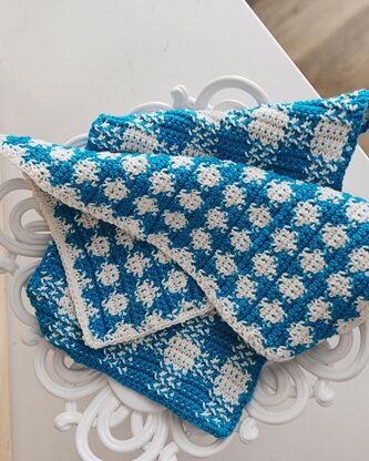 - • Size F/5 (3.75 mm) crochet hook. • Paintbox Yarns Cotton DK (100% Cotton): o 2 Skeins Champagne White. o 2 Skeins Kingfisher Blue.