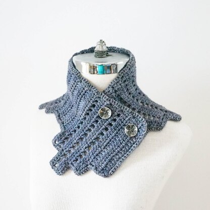 The Modern Edge Neck Warmer Scarf has a modern contemporary style adding a unique touch to your wardrobe. Designed by Valerie Baber of Valerie Baber Designs just for you to warm your day with elegance and style. Made with a worsted weight yarn to keep you warm and cozy in the colder days.