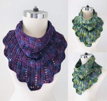 YARN***:*** 1 skein (440 yd / 402 m per 4 oz / 100g per skein). You can use most sock weight/fingerling weight yarns for this scarf. Shown in Malabrigo Yarns Sock Yarn in Abril (purple) and Indiecita (blue/green).