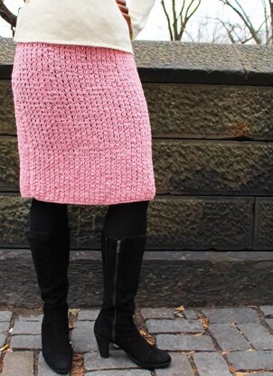 This straight skirt is a simple project for a first-time garment crocheter. The Tunisian stitch pattern is an updated version of “the Melissa stitch” found in a vintage crochet book. The Modern Melissa Skirt has a great texture and the denser fabric of the Tunisian crochet means you can wear it unlined over tights or leggings. Includes video tutorial.