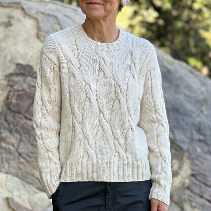This design is a modern twist on a traditional cable knit sweater. It has a simple cable (twist!) pattern, modified drop shoulders, and the option of a crew neck or turtle neck.