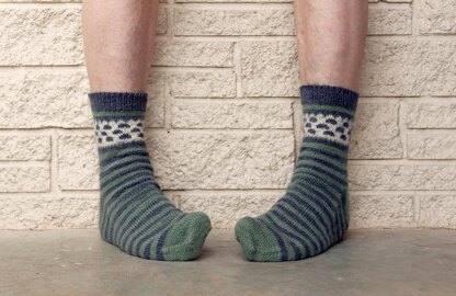 The beautiful locally produced and hand dyed Happy-go-knitty yarn used in these fun socks is a blend of Alpaca, Corriedale and Nylon, which makes for a rustic and robust sock, that is also soft and oh so cozy.