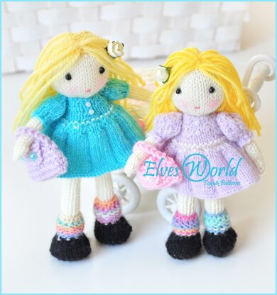 The file is 17 pages long and contains 60 detailed step-by-step photographs along with complete pattern instructions how to make the doll, her hair, her dress and her bag. The pattern provides all necessary information to make the doll, and also contains links to useful technique tutorials. Please note: both pictured Molly and Dolly dolls are made from the same pattern. These little dolls are knitted in the round - you need to be able to knit in the round (this is really very easy and you avoid having to sew parts).