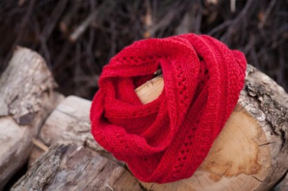 This infinity scarf is so fun to knit up. It is comprised of several different two stitch repeats, making it an ideal 2nd/3rd project for the new knitter. It employs many of the stitch techniques used in more advanced patterns, without all the pressure of making a garment that’s going to fit. It’s a great knit for the more experienced knitter if you’re looking for a project that will go quickly, is easy to put down and pick up without losing your place, but still has enough going on to hold your interest. The final product is wonderfully comfortable and warm, and is a versatile and fashionable addition to anyone’s wardrobe. Yarn is held double throughout, giving a delightful squishy texture.