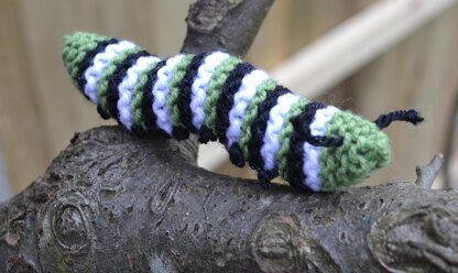 It is a much easier knit, on two needles. There is a tiny bit of embroidery for the legs, and the pattern contains a link to my blog where there is a photo tutorial if you need a bit of extra help with this technique. There is one seam, and detailed instructions on how to sew your caterpillar up with a pipecleaner, so he can be posed to look like he is moving. As in all my patterns I have a stitch count at the end of each row.
