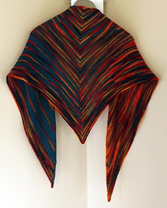 The shawl body is stocking(ette) stitch and the border is garter stitch. No wrap short rows, right and left leaning knit and purl increases are used for the shaping and stripes.