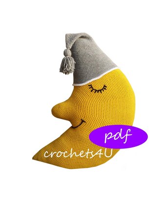With this pattern you can crochet a unique moon shaped pillow. Very nice to decorate a child's room. Or to give as a present. The moon matches with the cloud, which is not included. The cloud is a different pattern.