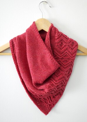 MORAVIA COWL features cables artfully arranged in a wide panel along one edge and a narrow cable carried up the other edge of this triangular shaped neck accessory. Inspired by larger asymmetrical shawls, this version is smaller, quicker to knit up, and perfect for layering. Moravia Cowl is knit flat, ends are then seamed. Cowl is one size: 21" tall x 19" wide. Pattern includes both charted and written instructions.