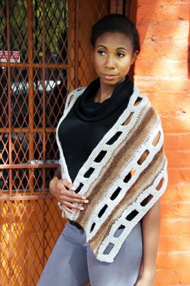 This shawl features my DropStitch Openwork™ technique and as you can see is very versatile. Really like the juxtaposition of the two weights of yarn. Get creative with your color combinations if the subtle browns are not or you!