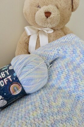 Wrap your little one in the soft serenity of Morning Whispers, a delicately crocheted baby blanket using the Lion Brand Baby Soft yarn Worked in the Basic Moss Stitch in the round, this pattern creates a gentle, woven texture that feels both modern and timeless. A calming blend of pastel yellow, lilac, and sky blue gives the blanket a dreamy, watercolor‑like look—lightweight yet cozy, making it perfect for all seasons. Its breathable fabric and soft drape make it ideal for snuggles, stroller rides, nursery naps, or tummy time. Crafted with everyday life in mind, this blanket is machine washable and dryer‑friendly.