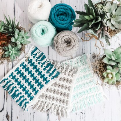 Learn mosaic crochet by making this beginner-friendly Mosaic Mug Rug pattern. If you love colourwork but hate carrying yarn and changing colours, you will love this crochet pattern! Adding Fringe eliminates having ends to weave. Includes a video tutorial.