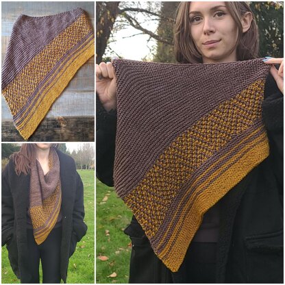 The model is wearing the cowl made with 2 contrasting colors of KS Fiber Arts Silky Yak DK yarn 60/20/20 Superwash wool, Silk, Yak blend that feels very luxurious around your neck. I highly recommend you use a very nice, soft fiber to wear close to your neck.