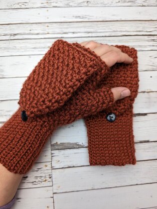 The Moss Stitch Fingerless gloves feature, of course, moss stitch! These gloves use a slip stitch ribbing for a tighter, yet stretchy, fit around the wrists. Sizes range from typical women's medium up to men's large - this equals measurements ranging from 7-9" when measured around the knuckles of the four fingers. Optional flaps finish it off! This pattern is free on my blog, or you may purchase an ad-free PDF copy here!