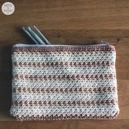 This cute little zipper pouch measures approx 7” x 4.75”, a perfect size for storing crochet hooks!