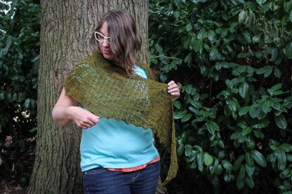The beautiful mossy green of this color speaks so loudly to my color heart that I found it difficult to create something that really did it justice. I finally decided to keep it simple, and worked a bit of stockinette followed by a very simple and organic lace repeat. The resulting shawlette is both feminine and crisp, and makes me think of the gorgeous moss that is all over the place in the Pacific Northwest.