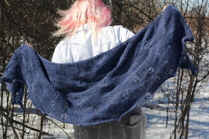 The Mother of the Hero shawl is a crescent shaped shawl knitted from the top down, with a diamond patterned body worked in garter and stocking stitch and interspersed with lace leaves, increasing in frequency into a leaf lace border. Worked in a wool/alpaca blend worsted weight yarn, it is a warm wrap large enough to wear with the wings tied in the back as a practical heart warmer, but shallow enough to wear around the neck and shoulders as a generous scarf.