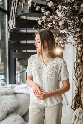 “Mountain Climber for her” sweater is worked from the neck down completely seamless. The circular yoke features a freeform cable pattern.