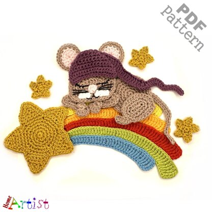 The pattern provides instructions to make a cute crochet applique that can be used in inumerable ways...decorate and personalize your favorite objects like hats, t-shirts, bags, school knap-sacks and lots of other stuff you can think of. Mouse: 3 ½ inches across by 6 inches tall Star: 8 inches across by 3 inches tall using crochet hook 2.5mm but the size can be varied by using thinner or thicker yarn and types of hook. Colors can be changed according to your personal preference. The pattern is designed for worsted weight yarn and uses American English crochet terms. This crochet pattern is available for Instant Download. Once your payment is received, you will get an email with the download link and details of your order. In case of problems feel free to contact me anytime.