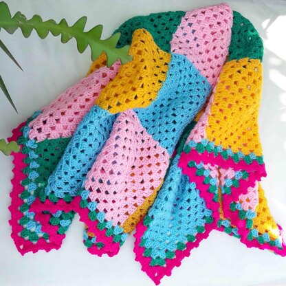 Shopping your stash is the most enjoyable, convenient and inspiring way to enjoy this project. The Mraba Granny Blanket uses worsted weight yarn in 5 colours. You will need approximately 485 yards for the squares and 100 yards for the border.