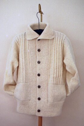 Needles used are smaller than usual for this weight yarn. This produces a garment which lasts longer and fits better. Sleeves are knitted from the shoulders down to the cuff. Stockinette gauge is 4 st/in on US 6.