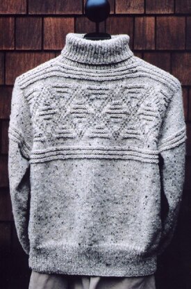 Needles used are smaller than usual for this weight yarn. This produces a garment which lasts longer and fits better. Sleeves are knitted from the shoulders down to the cuff. Stockinette gauge is 5 st/in on US 6.