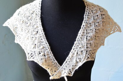 This shawl is made with Svana, a 2-ply laceweight made of 100% Icelandic lambswool from Jorstad Creek. It is soft and warm; it also shows the stitch pattern beautifully.
