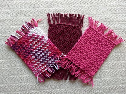 The patterns use worsted weight cotton yarn. They work up quickly. They make great gifts and add a quirky vibe to your home decor.