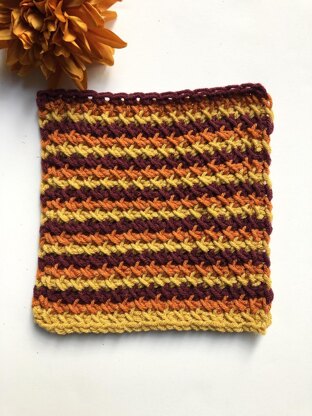 Made with a twist on some basic stitches, this tunisian blanket square looks amazing with just a bit of texture and an easy 2 row pattern repeat. Use the colors of fall & this Tunisian blanket square will remind you of warm mulled wine.