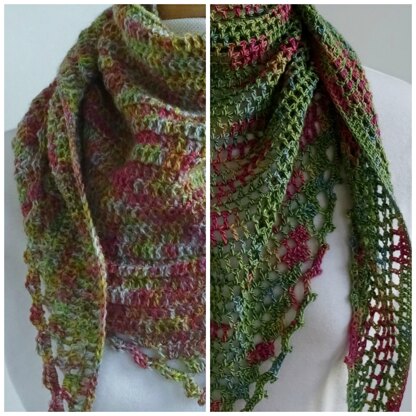 Do you have a favourite skein of sock yarn and want a pattern that shows it off? Well you need a simple design as you don’t want the stitch pattern to compete with the beauty of the yarn. This simple shawlette is the perfect match. It can be made with one skein of sock yarn and in 2 variations, with 2 choices of border. It works from the point upwards and you stop increasing once you have used a certain proportion of the yarn – instructions are given for this calculation, which is easy!