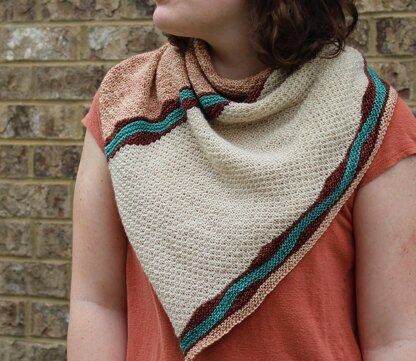 Named for the bay in southern Iran where tributaries converge before sliding together into the Persian Gulf, Musa Bay uses German short rows and broken seed stitch in a relaxed gauge to mimic the dendritic movement of water over sand. Knit from one end to the other in contrasting colors, Musa Bay is simple to make and striking to wear.