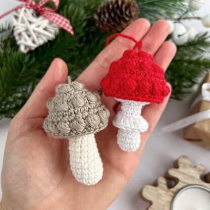 Mushroom no sew crochet pattern Christmas ornament Amigurumi keyring crochet Car mirror hanger Bag charm keychain