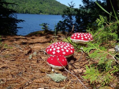 These adorable mushrooms are knitted in the round from the bottom to the top. Finished Toy Size: Approximately 3.5” / 9 cm small, and 6” /15 cm large. Yardage: Small Mushroom: 35 yards / 32 meters white yarn, 15 yards / 14 meters red yarn. Large Mushroom: 45 yards / 41 meters white yarn, 20 yards / 18 meters red yarn. The instructions are written and charted (also the chart is written out)for the stranded colorwork for the larger mushroom.