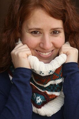 This cowl is perfect for the cold weather. It’s covered with colorful, non-traditional Fair Isle designs such as checkerboards, diamonds and chevron stripes. This piece is great for the confident knitter who may be new to fair isle.