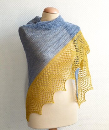 Mustard and Slate is the shawl to knit when you just don’t want to choose… Simple or lace? Gray or Oker? Using two colors, Mustard and Slate has a simple textured body and a delightful lace edging. You can really have it all!