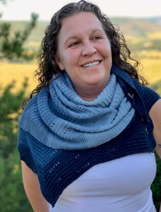 Inspired by Colorado skies and a love for knit chevrons, My Blue Heaven is a rectangle shawl knit lengthwise to produce a blanket of comfort. The use of strategically placed garter stitch produces a simple texture to deliver both an interesting fabric as well as an interesting knit.
