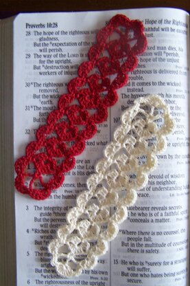 Starting at the top edge of the hearts, working in rounds, charming little hearts all in a row are formed in the first round. The next two rounds frame it into a lovely openwork bookmark.