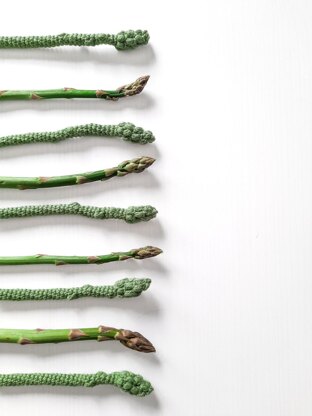 This is an intermediate pattern because although many of the stitches are beginner friendly, the tips of the asparagus stems are more unusual and will require a bit of focus.