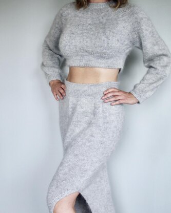 MATERIALS: Any DK weight yarn where you can obtain the right gauge. The sample in the picture is knitted in one tread Garnstudio Drops Baby merino and one tread Drops kid silk.