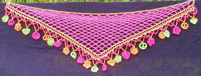 Your Favorite Things. Make it scarf or shawl size just by changing the size of the hook. Add your favorite things as dangles...or choose from a selection of instructions for hearts, circles, flowers, and peace signs. Even a little cute little skull dangle has been included for my skull obsessed customers. Worked from the top down, the fringe border is added last. Written in American Crochet Terms, there are a few pictures to help with the tricky parts.